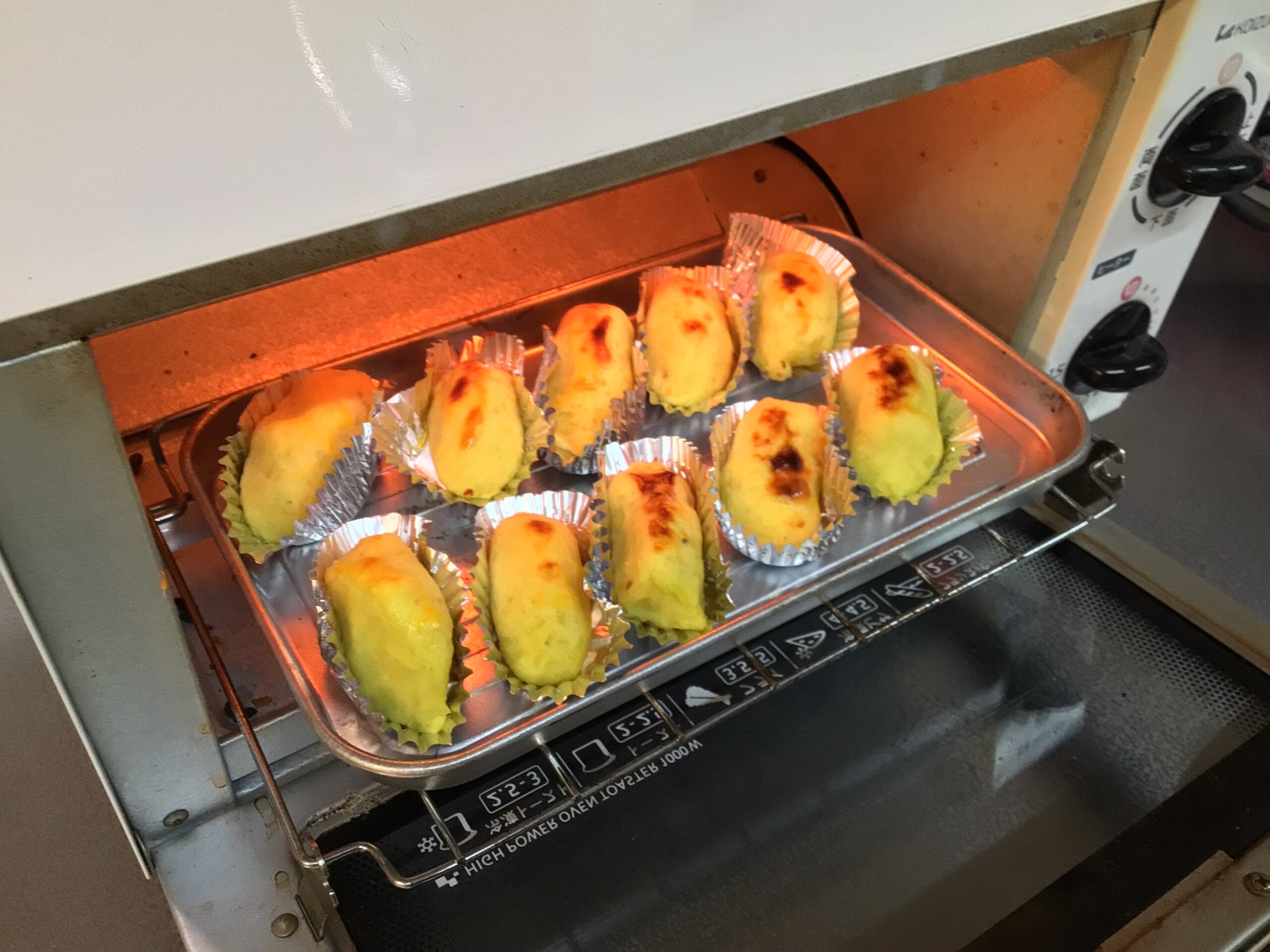 事前にレシピを調べてオーブントースターでこんがり焼き目をつけて美味しく出来上がりました☆